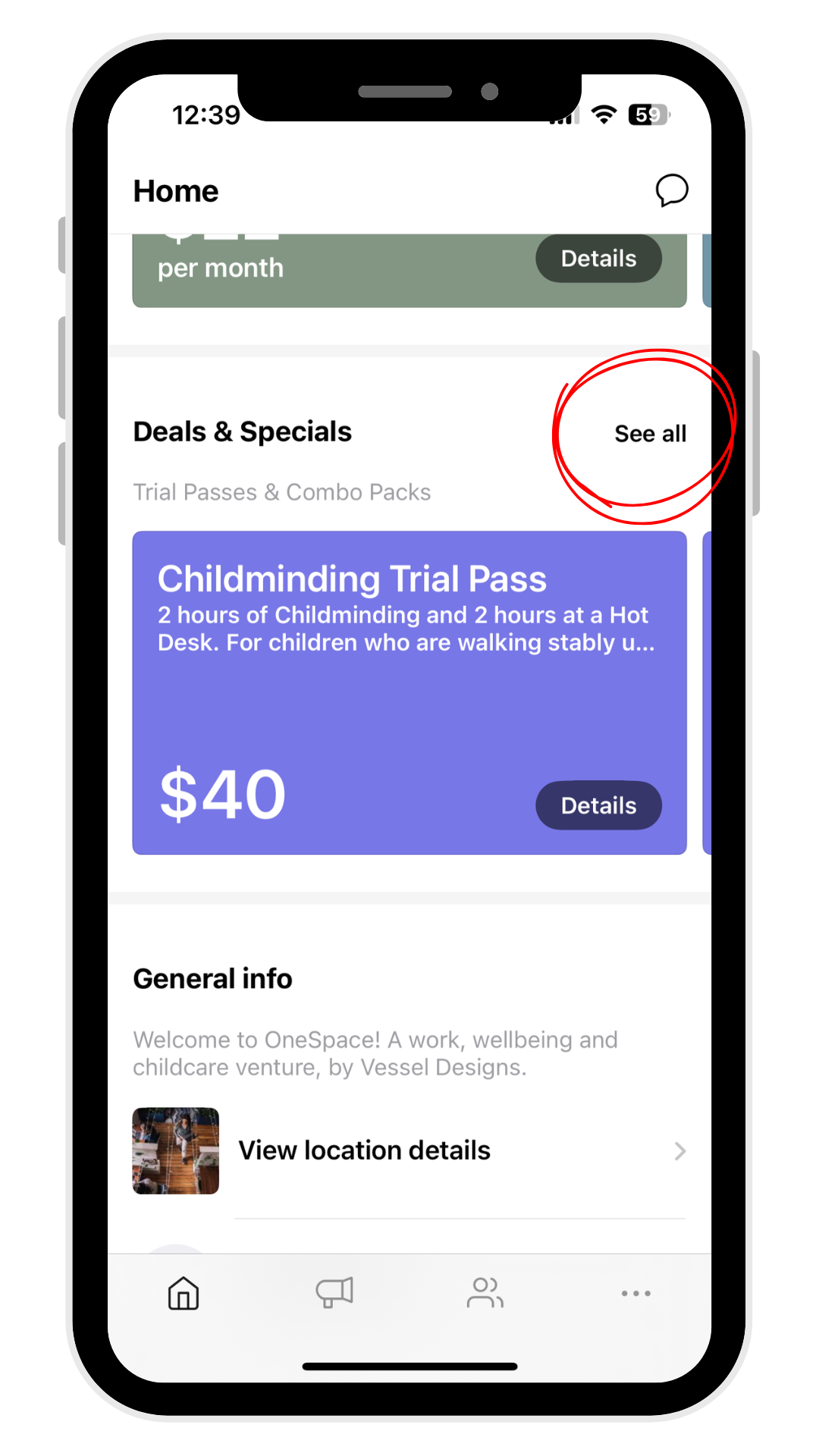 Book childcare, coworking and more in the OneSpace Community App.
